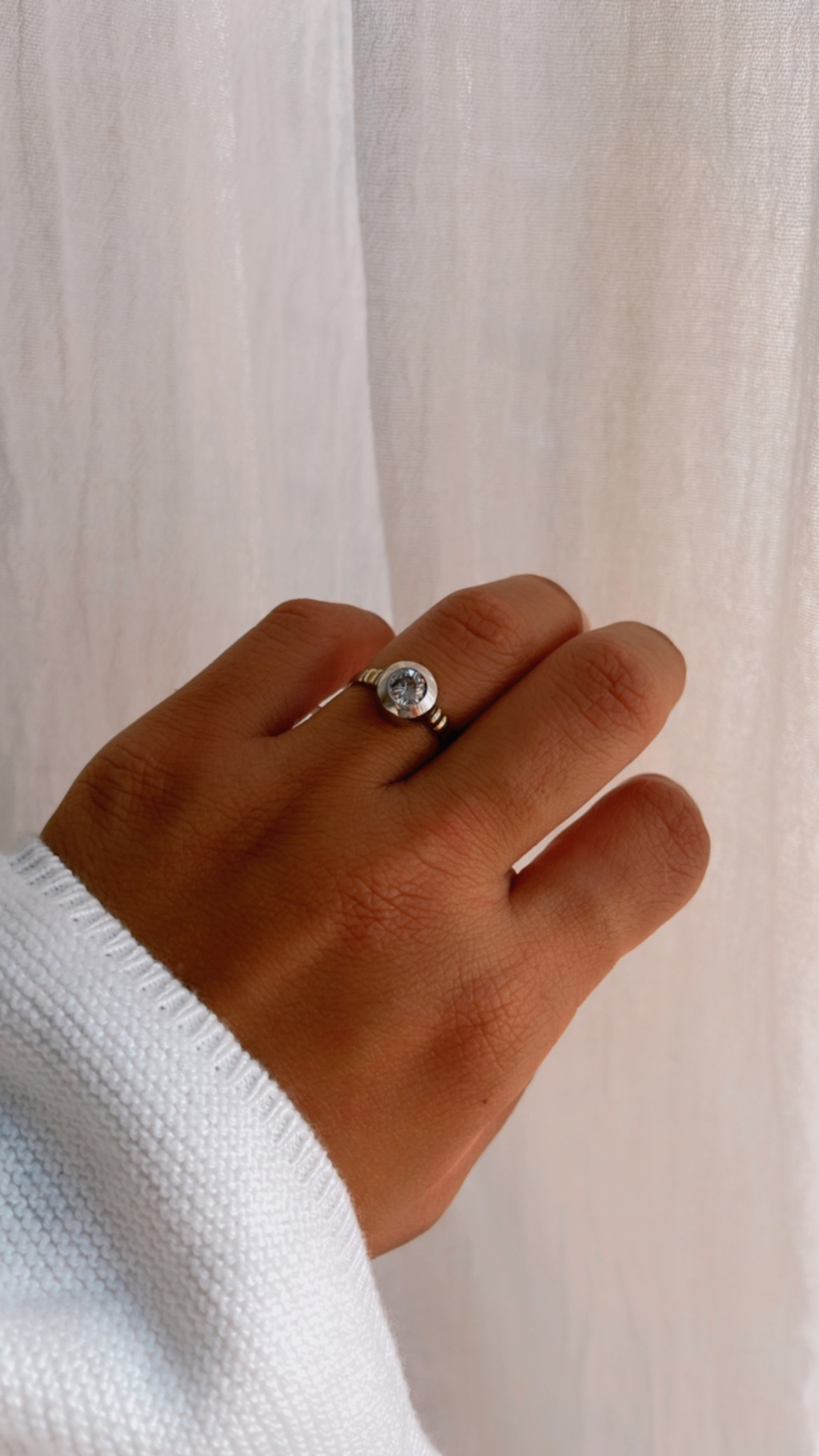 Estos anillos se encuentran en esta categoría, ya que estuvieron exhibidos y su color es un poquito más oscuro. Es de plata 925 y oro. Aprovéchalos!
